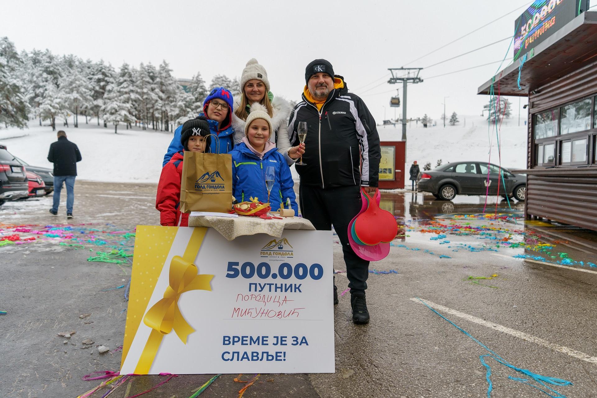 Zlatiborska Gold gondola je 24. januara prevezla 500 000. putnika i to ne samo jednog putnika, već celu porodicu Mićunović iz Crne Gore. Ova prodica je jubilarni gost najduže gondole na svetu od kojih kreće odbrojavanje do milionitog putnika. Od ranog jutra svi zaposleni u Gold gondoli, u svečanoj atmosferi, iščekivali su trenutak kada će se na prodajnom mestu čuti: „Čestitamo! Vi ste 500 000. putnik Gold gondole i srećni dobitnik nagrade“.
